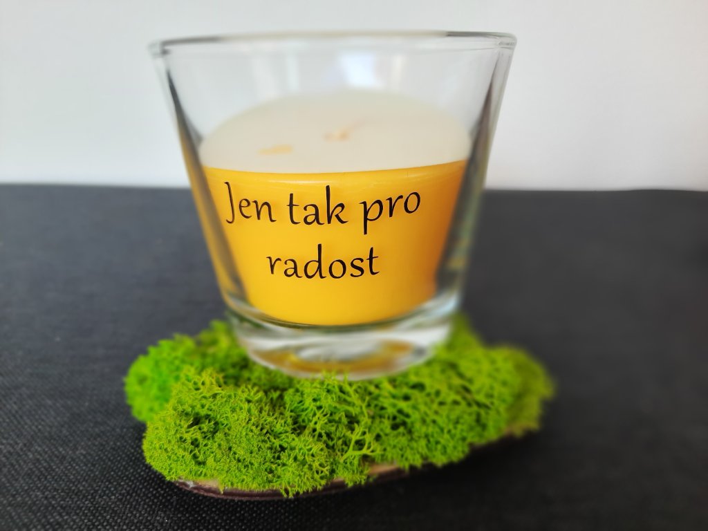 Krabička obsahuje: Macrame Andělka štěstí, svíčku s textem '' Jen tak pro radost '', která má ovocnou vůni a přívěsek s vážkou dle výběru.