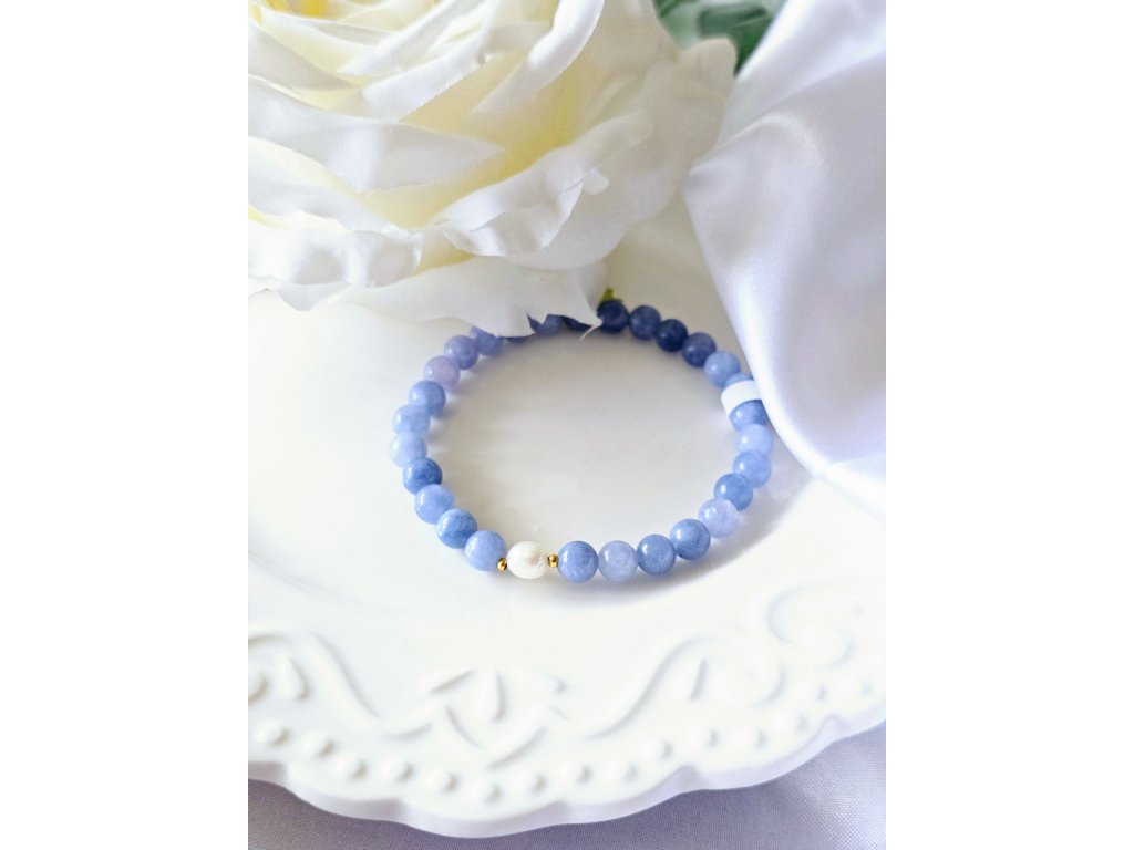 Ručně vyrobený minerální náramek Angelit a říční perla.