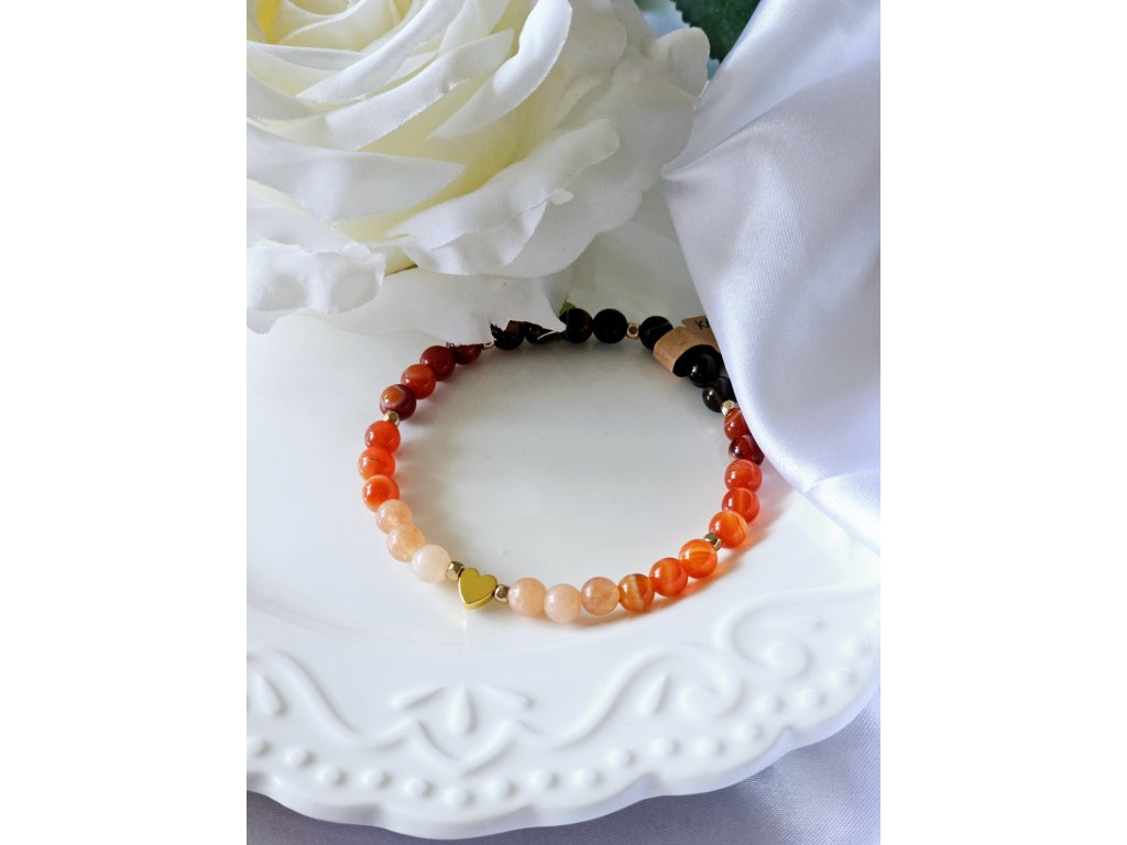 Ručně vyrobená minerální náramek z Karneolu a Hematitu.