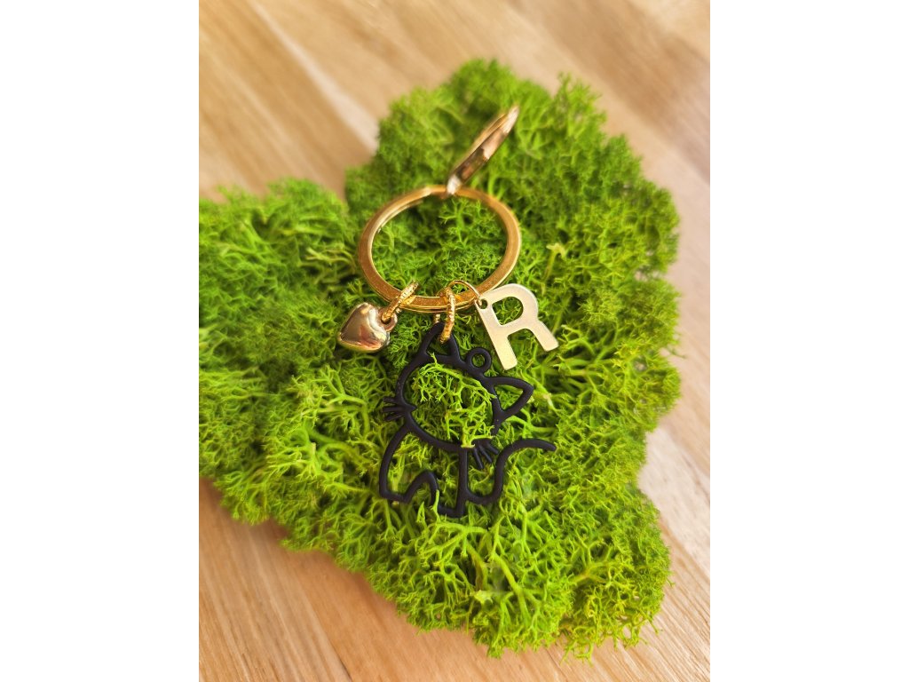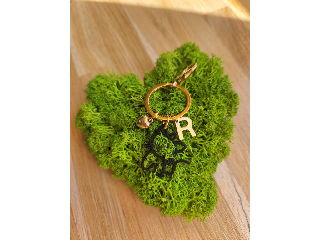 Přívěsek se zlatým kroužkem a karabinkou.