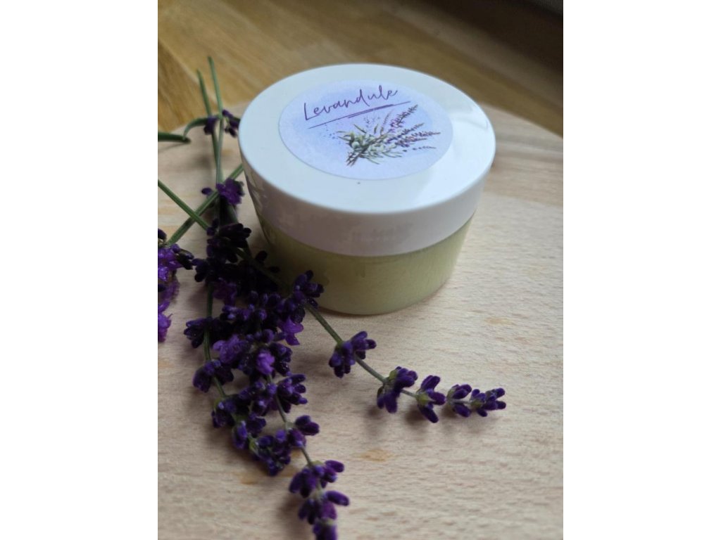 Složení: Levandule lékařská, kokosový olej lisovaný za studena, bambucké máslo, levandulová esence.