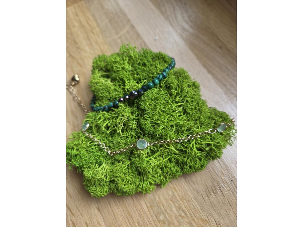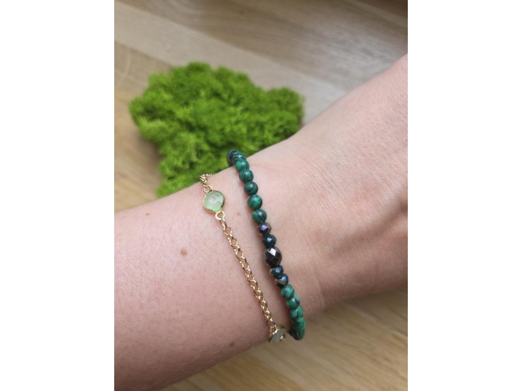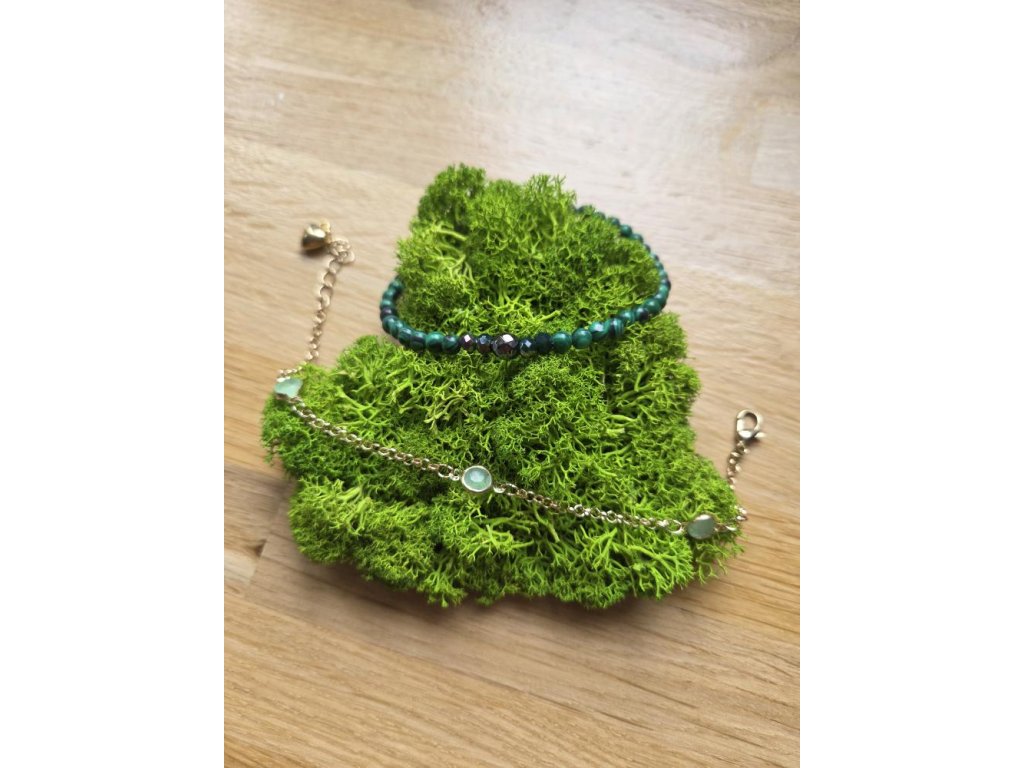 Sada náramků je sladěna do zelené barvy, jeden náramek na gumku a druhý je nastavitelný.