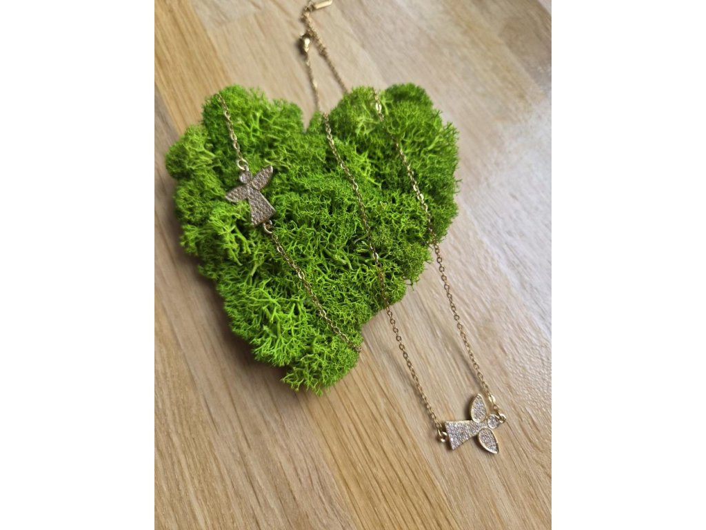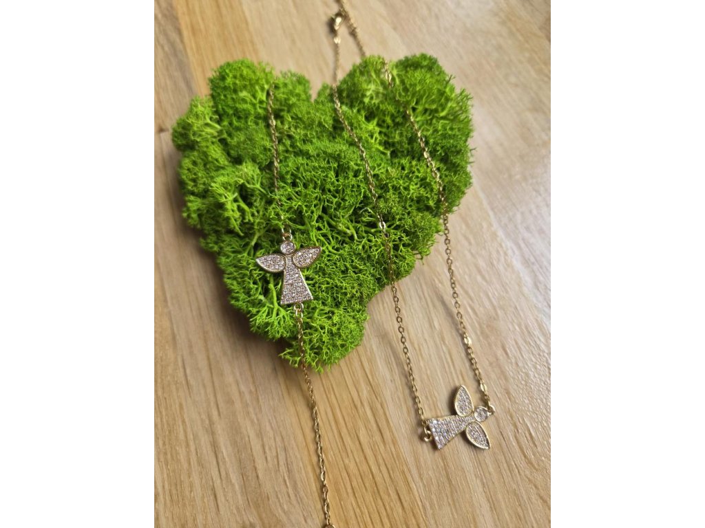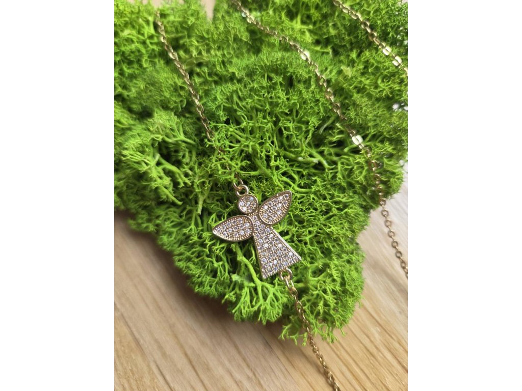 Zlatá chirurgická ocel a přívěsek andílek se zirkony, tato krásná sada potěší každého.